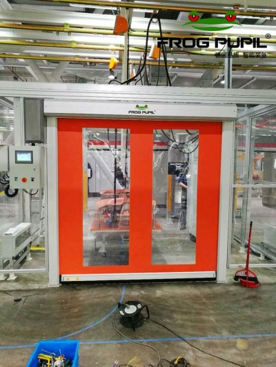 FROG PUPIL 德国菲瑞普伺服高端防护型快速门安装于上海某知名外资品牌汽车工厂,铝合金主框架(抗氧化不生锈)/2.0加厚进口门帘(强韧耐磨抗冲击)/