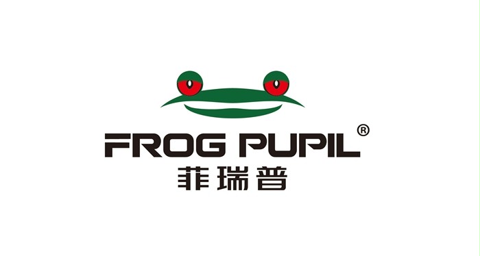 英文FROG PUPIL翻译中文为:蛙瞳,即青蛙的瞳孔,图形设计着重体现青蛙的头部并用红色突出眼睛,使英文成为图形的注解、图形成为英文的图示,相映成趣、一目了然、画面感强。图形中红色的青蛙眼睛代表聚焦和专注;绿色部分代表自然界生物的绿色环保,代表企业的环保理念和对自然环境的重视与爱护。